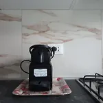 A helyszínen kínálnak egy teljesen felszerelt konyhát elektromos vízforralóval, sütővel és főzőlappal.